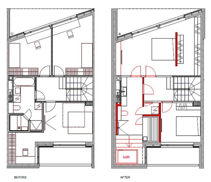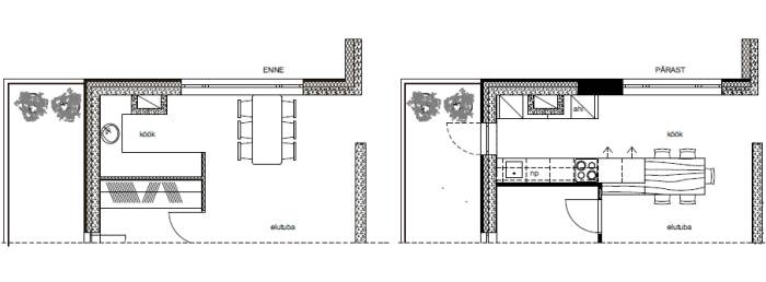 The value of an apartment lies in thoughtful planning, not merely in a good location nor a beautiful view 02/2016 Involved expert:Aet Piel Jaga: New flats on sale are usually advertised for a great location, good architecture and a unique view. Interior architect Aet Piel said that it is quite usual that the plannings has been overlooked. Home buyers look for the number of rooms and overall square meters, not considering the use of space nor the placement of furniture. Furniture arrangement should be put in place in the initial stages of house planning, collaboration with an architect and interior designer is crucial, for not only in private houses but also in apartments. This becomes especially important in small apartments, where every square meter really needs to be considered. Unfortunately it is very common that architect plans the space according to square meters. Interior architect on the other hand is the one who plans the use of space and placement of furniture functionally. Some, however, not all property development companies already realize the vital importance of interior design. In kitchen solutions, the furniture placement is crucial, because it is not possible to plan without thinking through the kitchen appliances precise locations and logical paths. If you believe that the apartment’s interior design is solely up to home buyers vision, it is not always the case, because the apartment is normally quite a small space for living with ready‐made solutions made beforehand. Professional input from an interior designer provides the best and sometimes the only possible solution. Modern open kitchen could have a counter or kitchen isle (the bigger the better). We should keep in mind that kitchen is a room for socializing, it is the heart of every home. Kitchen should not dominate the apartment, it’s charm should rather lie in it’s functionality, high‐quality materials and details. Kitchen decoration should blend in with colours and materials of the rest of apartment . Dark colours absorb the light in the kitchen, so dirt becomes more visible. Modern kitchen equipment, all the kitchen appliances and other furnishings ‐ lamps, chairs etc should be stylish. Kitchen is better not to be overloaded with excessive details. Often homeowners tend to do so because it is wrongly believed that integrated space, namely simple, minimalistic or monochrome kitchen is boring. In fact, the kitchen is part of the whole apartment and kitchen furniture should not be seen separately from rest of the apartement design. In this particular home and kitchen the interior architect was able to step in already during the early design process. The changes led to a home made considerably more attractive. Ground floor First floor The new materials in this kitchen are natural‐looking acrylic based or concrete‐like surfaces. Concrete, stone veneer panels, dried and weathered wood surfaces should rather belong to customized interiors rather than to private homes for their difficult day to day cleaning and maintenance. The newest thing about kitchen appliances is the hob that has an integrated air purifier with activated carbon in the middle, which means it does not require separate direct ventilation around cooking area. Above the kitchen island, instead of the suspended air ventilator on eye level, there is an alternative fully integrated fume extractor within suspended ceiling, which does not take more than 20 cm of space behind suspended ceiling. For sleek and streamlined look the handles of kitchen cabinet doors have been replaced with recessed channels on doors or with other invisible solutions. When talking about the effective use of space, the planning process should avoid excessively large corridors, and invest instead in storage areas and walk‐in closets. One should rather favour spacious living room than large bedrooms. Utility room in an apartment is an imperative, and wherever it is possible, a washing machine should be in a separate room with the rest of the household goods. Bathroom vanity or dressing table in a bathroom is just as important as work surface in the kitchen, and if necessary, the washing machine can be placed underneath it. Separate sink is quite impractical. It would be better to avoid building special plasterboard wall cabinets in children's rooms and bedrooms. In children's room one should prefer wardrobes or cabinets, which are not standard depth but rather thinner, still good for storing the clothing and all other necessary things. The usual 70 cm deep sliding door closet is not only boring but also massive and impractical for children. A very good apartment has a master bedroom connected with walk-in wardrobe closet and bathroom en suite. In apartments, as well as in private homes one should rather emphasize the different materials than colours, accentuating with curtains, textiles and lighting fixtures. Exciting vibe can be created with different materials on the walls ‐ whether the choice is ceramic tiles, decking, veneer boards, brick, concrete, wallpaper or last but not least the plaster. Here, too, one should not emphasize the colours but rather the characteristics of different materials and structures. Here are some tips and examples of how to manage with rather small changes and make one’s home much more attractive and functional. Given apartment was built in the 60's. The kitchen has been moved in the middle of the apartment and due to pipework it is now situated on a raised floor. A large kitchen island with a sink and stove and a spacious living room give this apartment completely different fresh look. These changes normally are going to cost quite a lot, despite the fact that they are in a small scale, because the open plan conversion does not consider only the walls but one has also tackle the tiles in the hallway, reconnect the water pipes and tidy the floor after dismantling the wall. A new property development transferred by small changes, ma